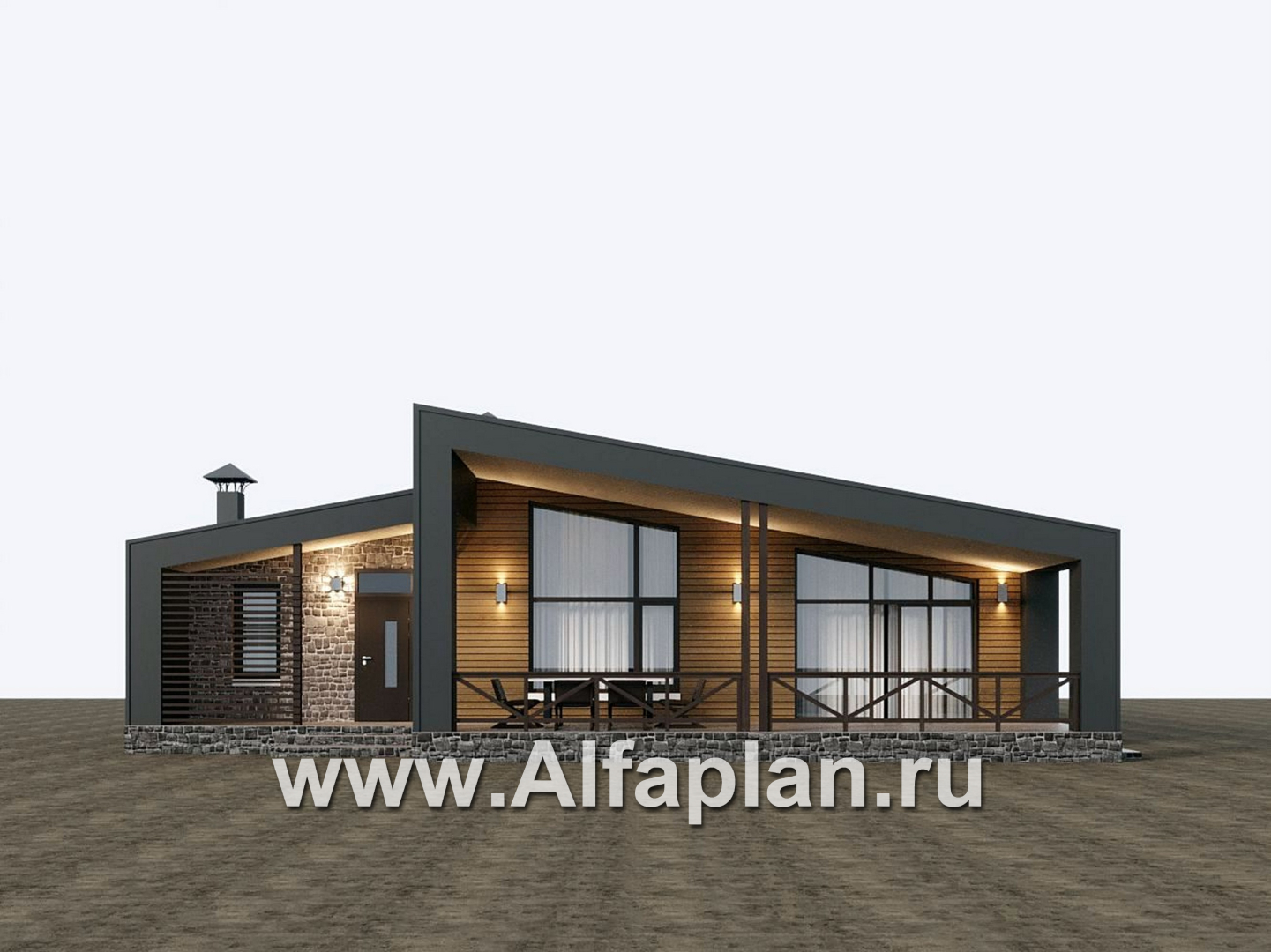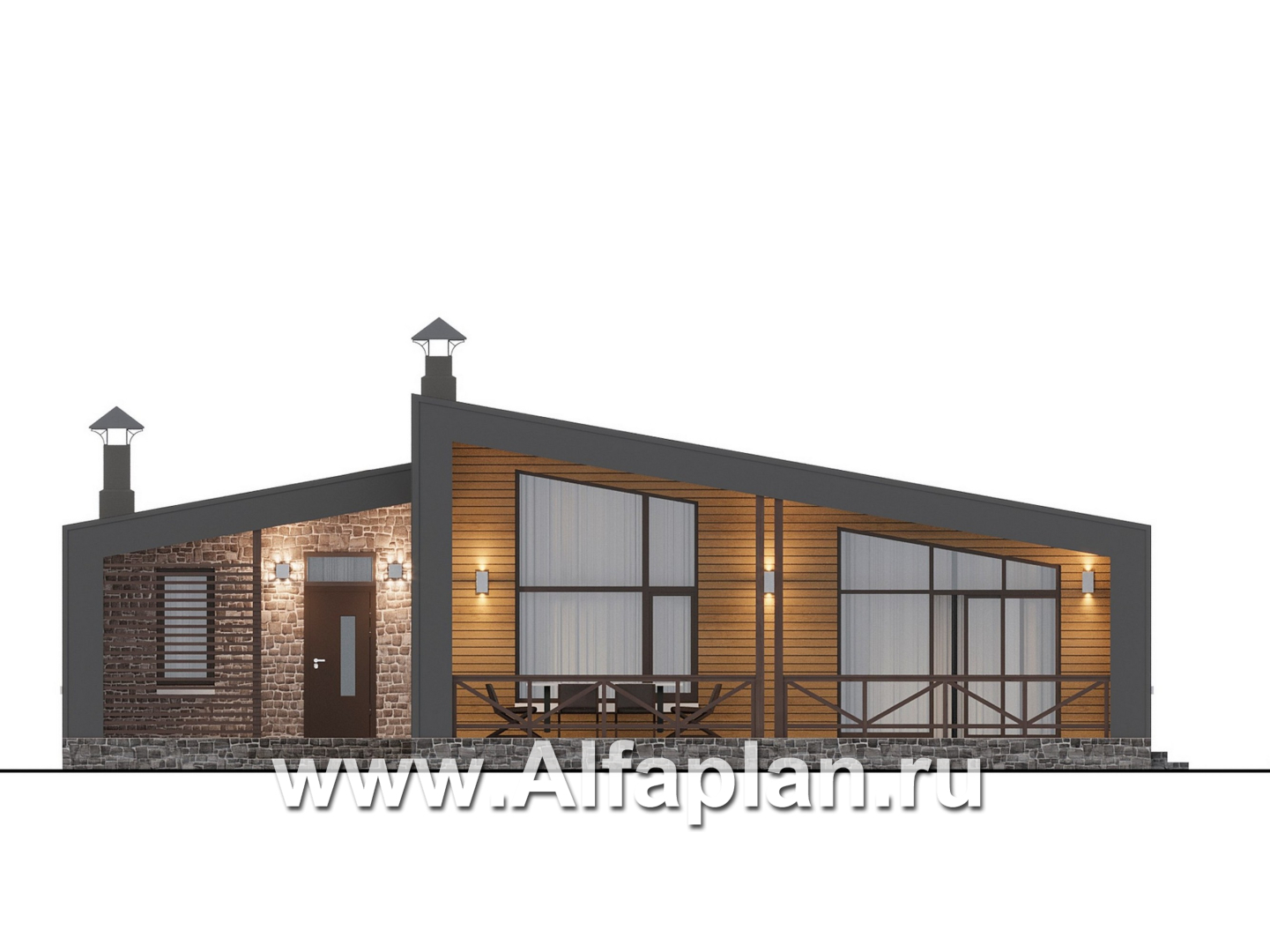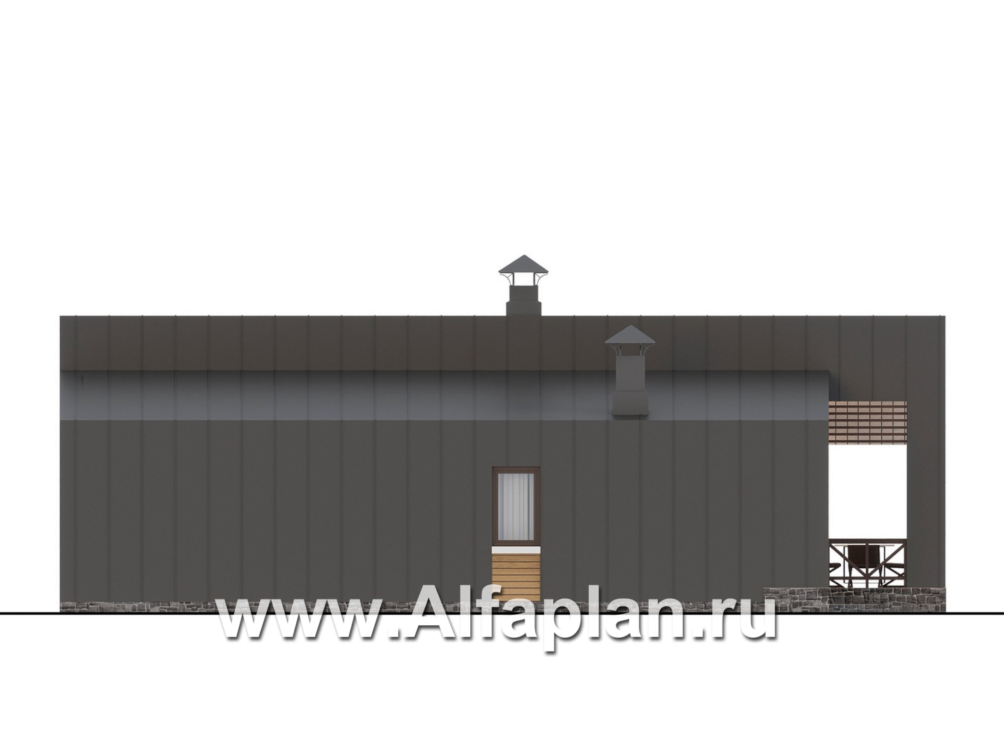 «Аметист» - проект одноэтажного дома, с террасой со стороны входа, 3 спальни, в стиле барн