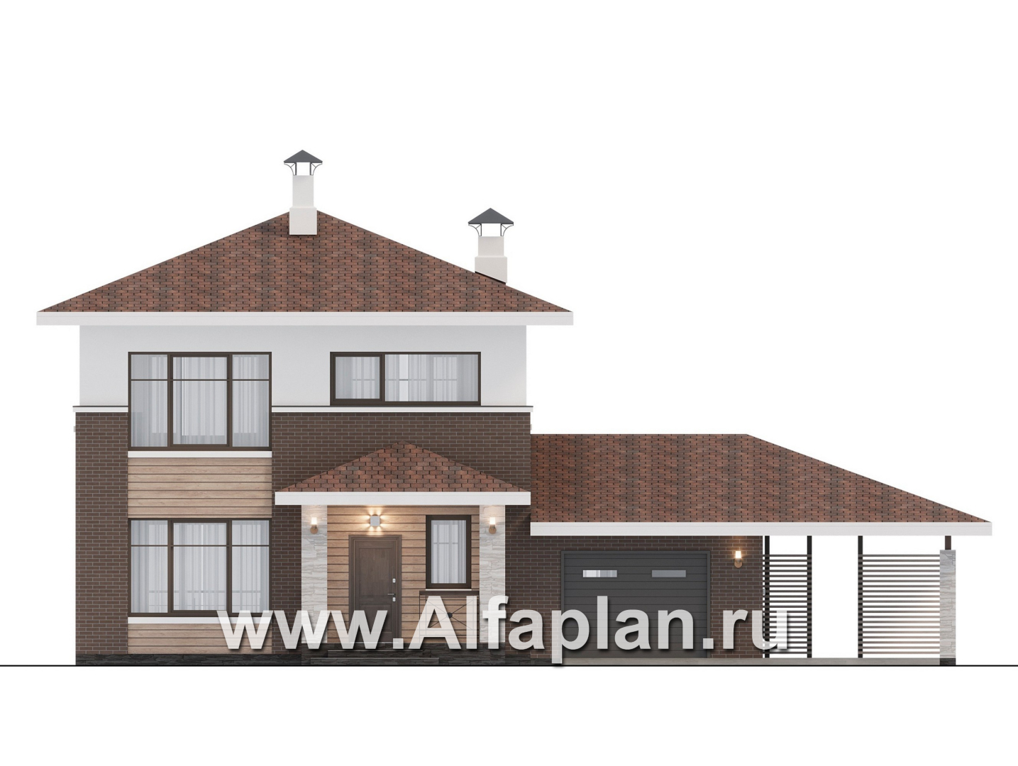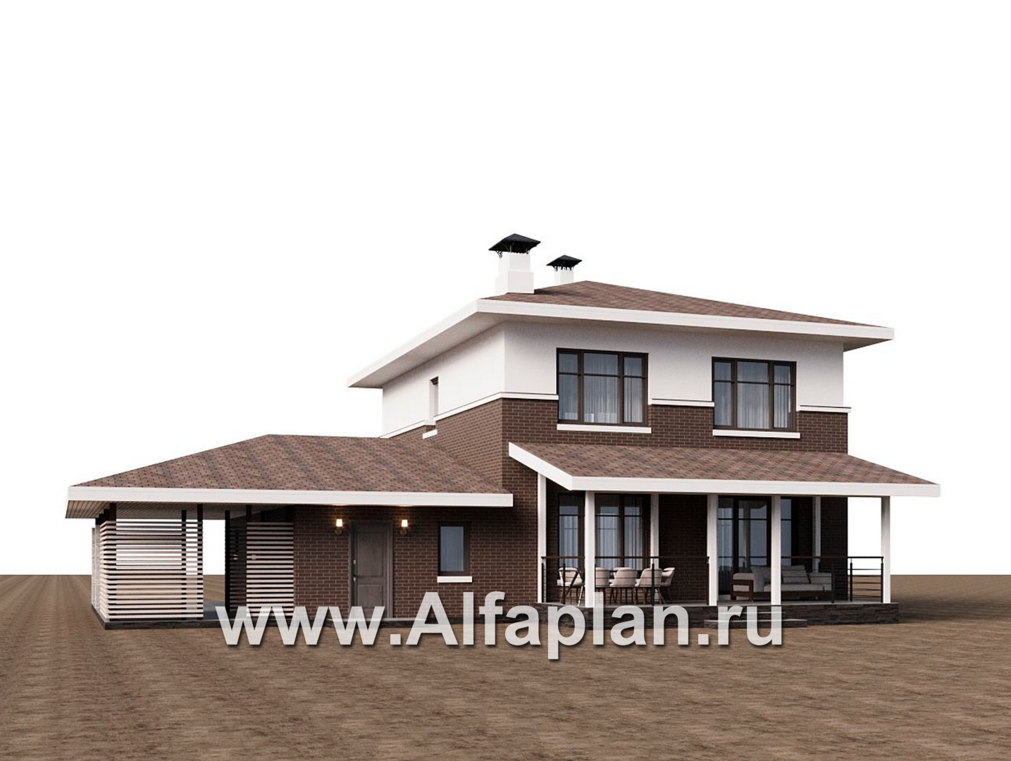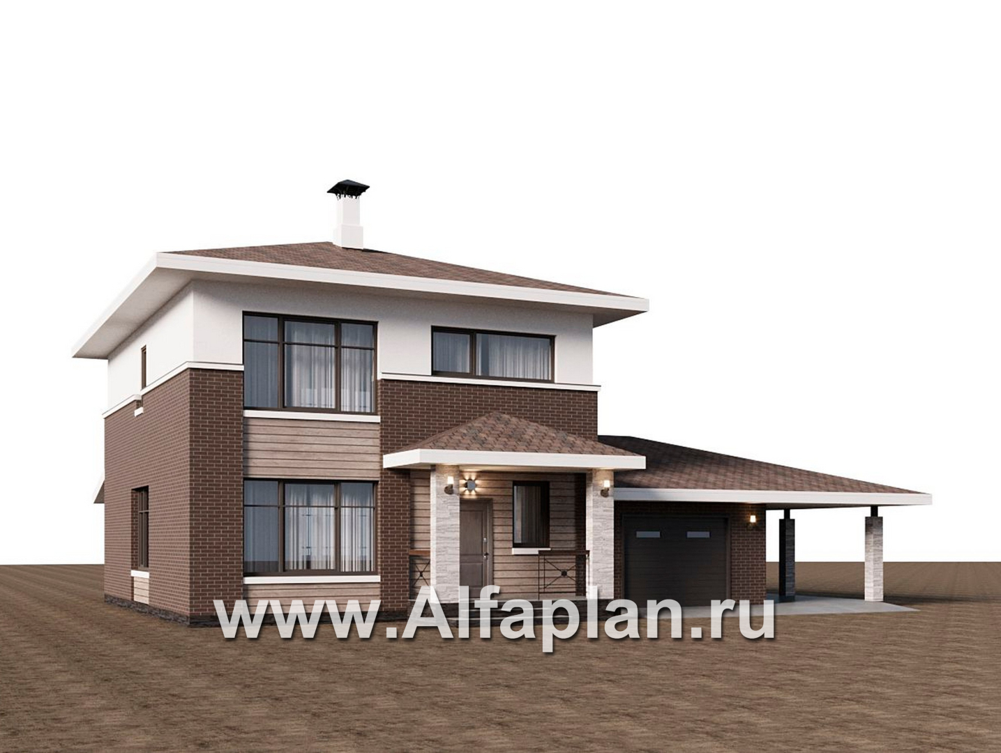 «Остров сокровищ» - проект комфортного, простого дома из газобетона, с гаражом и навесом для автомобилей