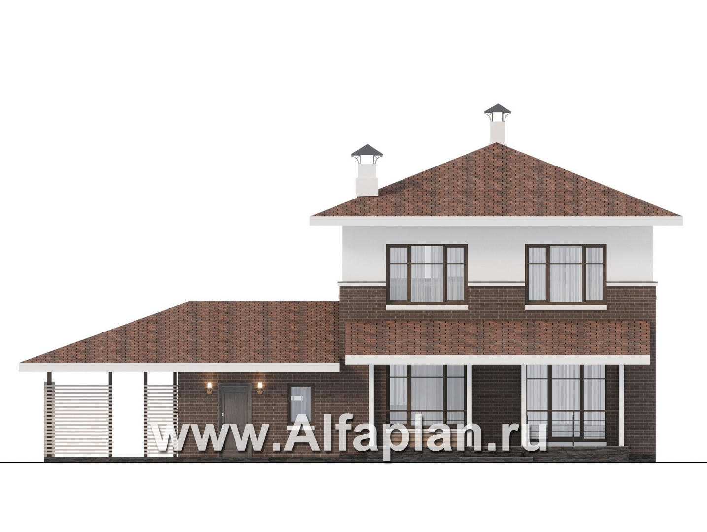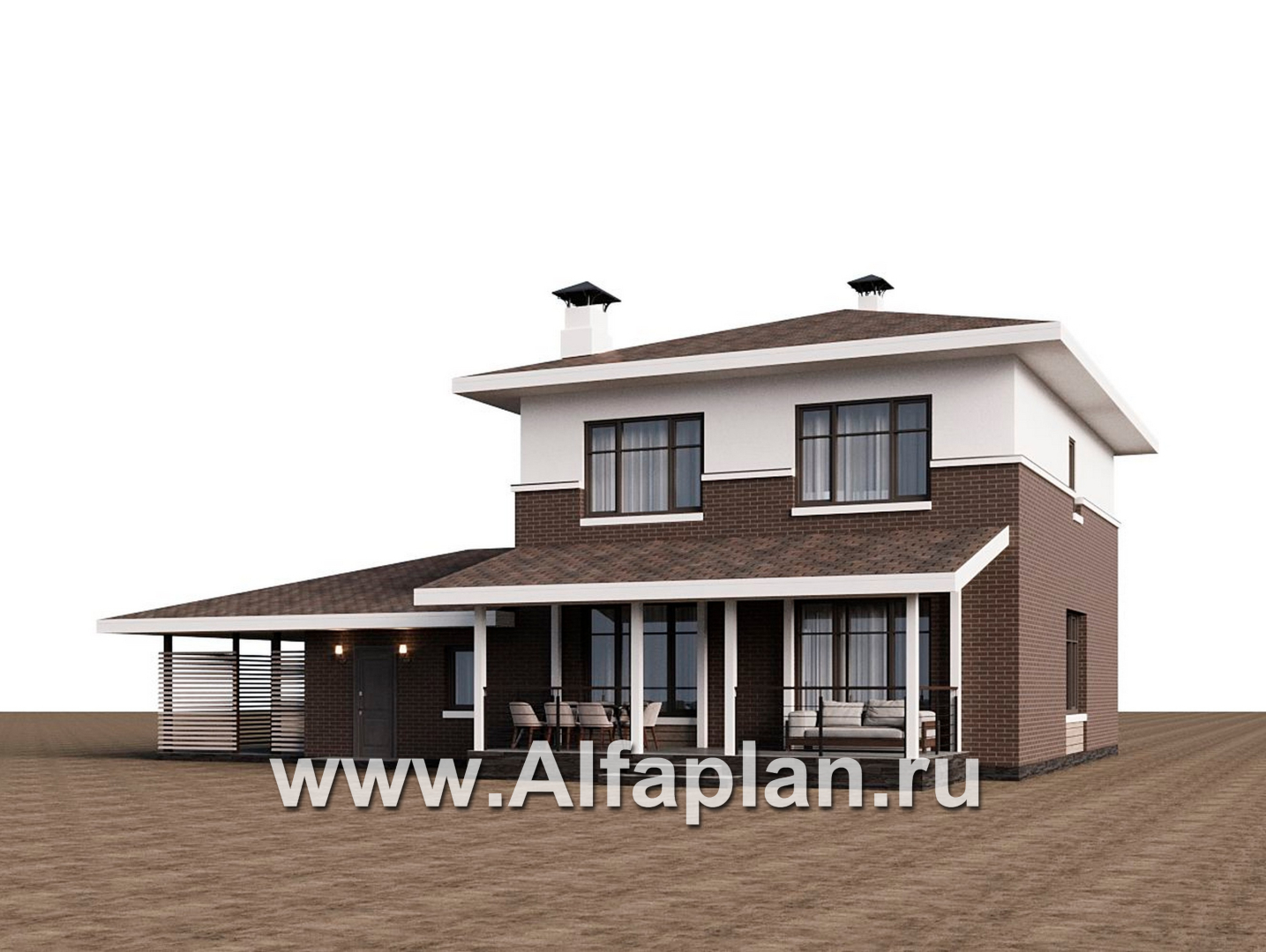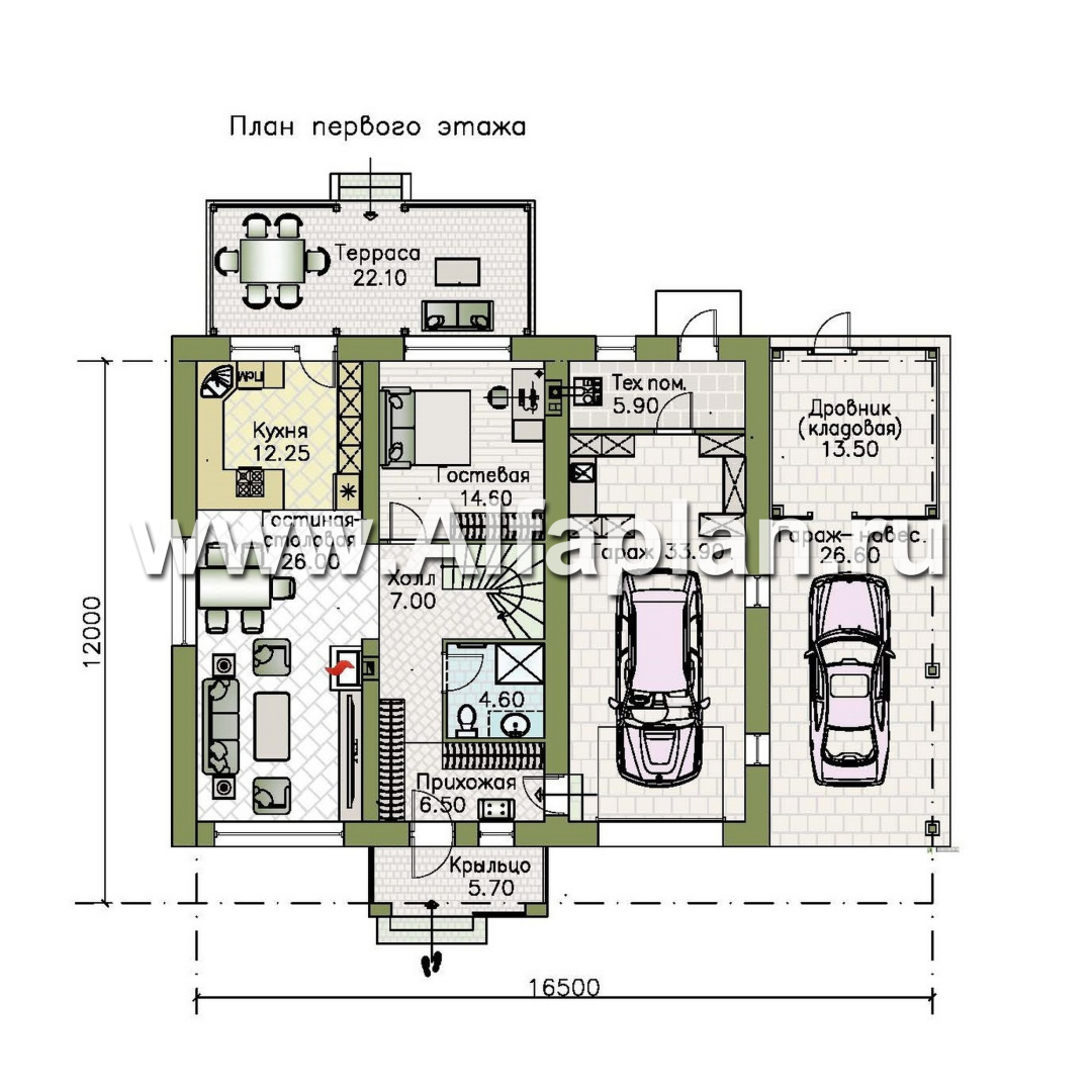«Остров сокровищ» - проект комфортного, простого дома из газобетона, с гаражом и навесом для автомобилей