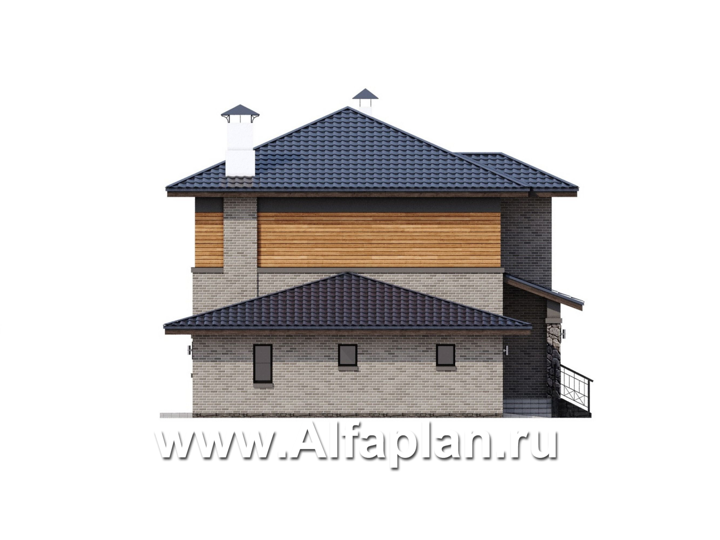 «Триггер роста» - проект двухэтажного дома из блоков, с террасой и вторым светом, с гаражом, в стиле Райта