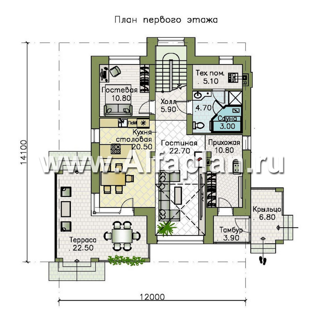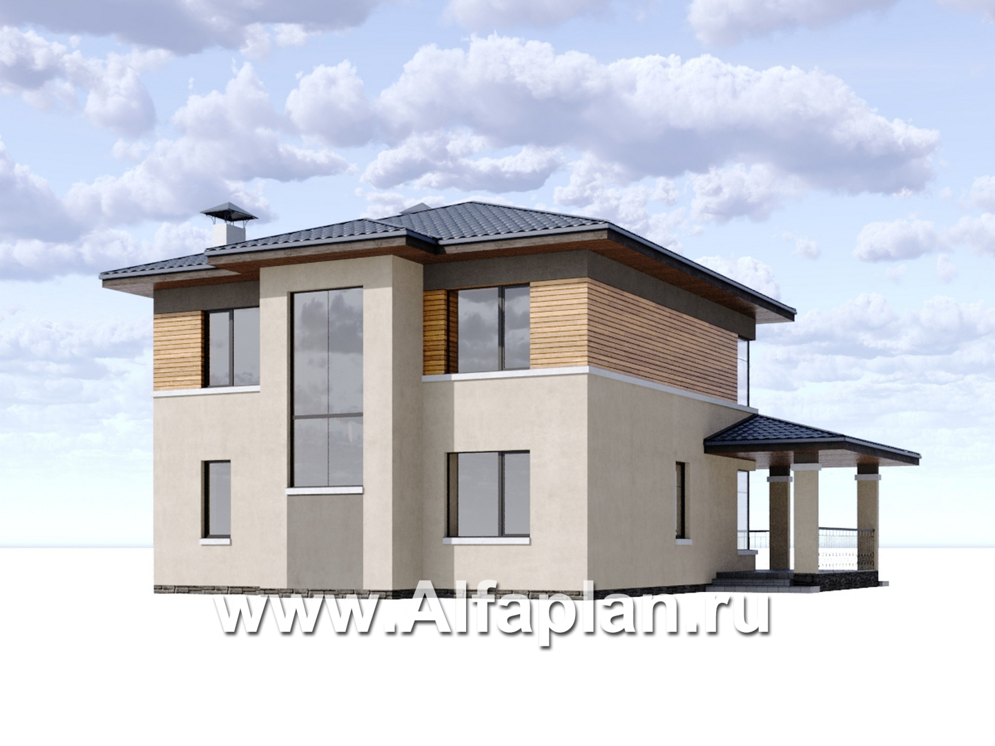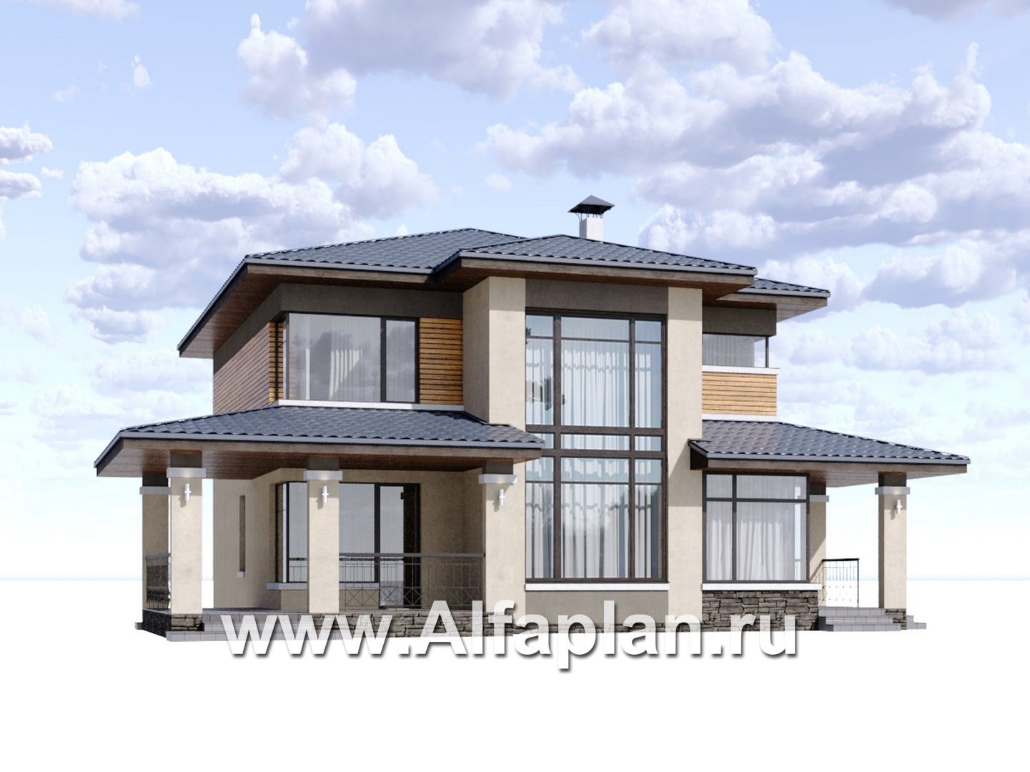«Монтана» - проект двухэтажного дома из кирпича, со вторым светом и с террасой, в стиле Райта