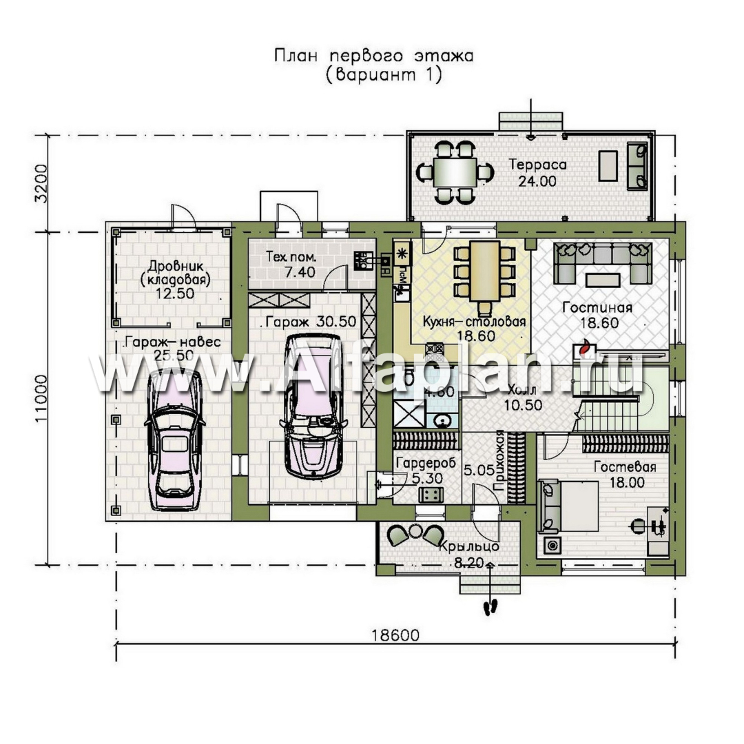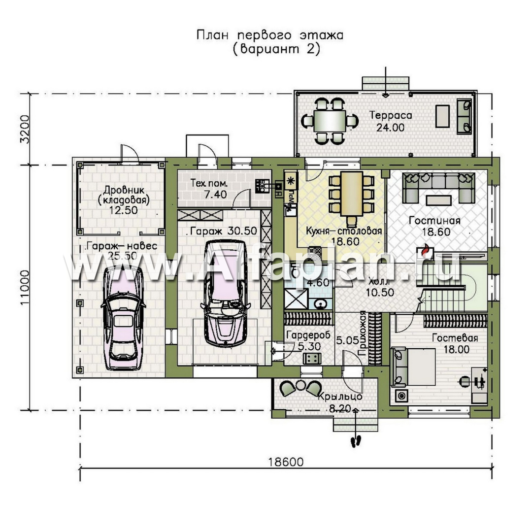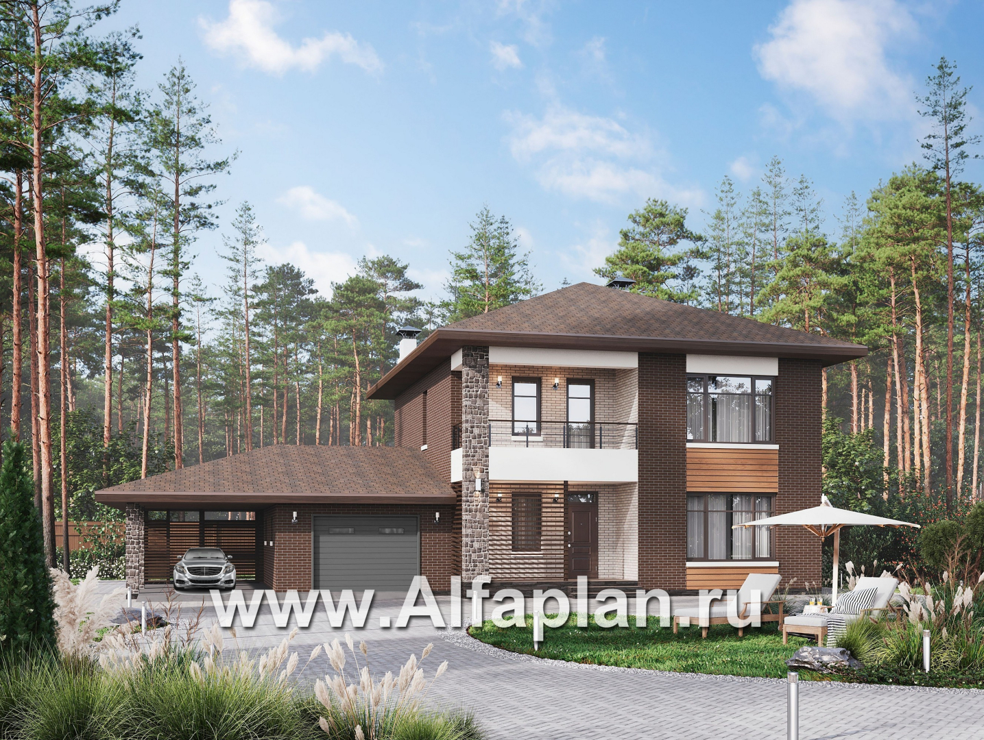 «Селигер» - проект двухэтажного дома из газобетона, с гаражом на 2 авто