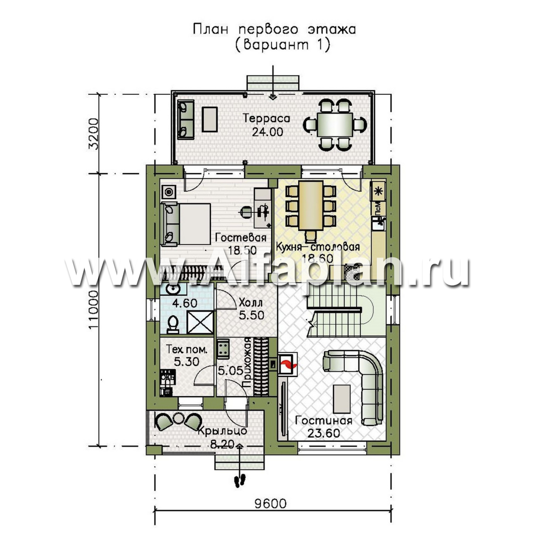 943A-S «Ладога» - проект двухэтажного дома из газобетона, с террасой, отличная планировка