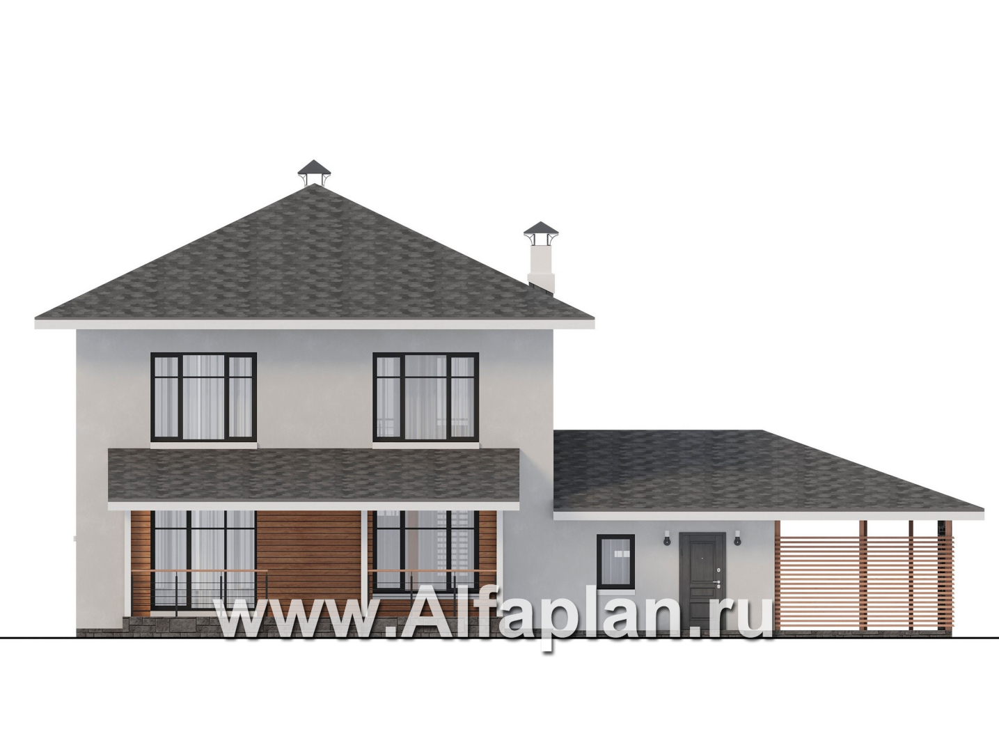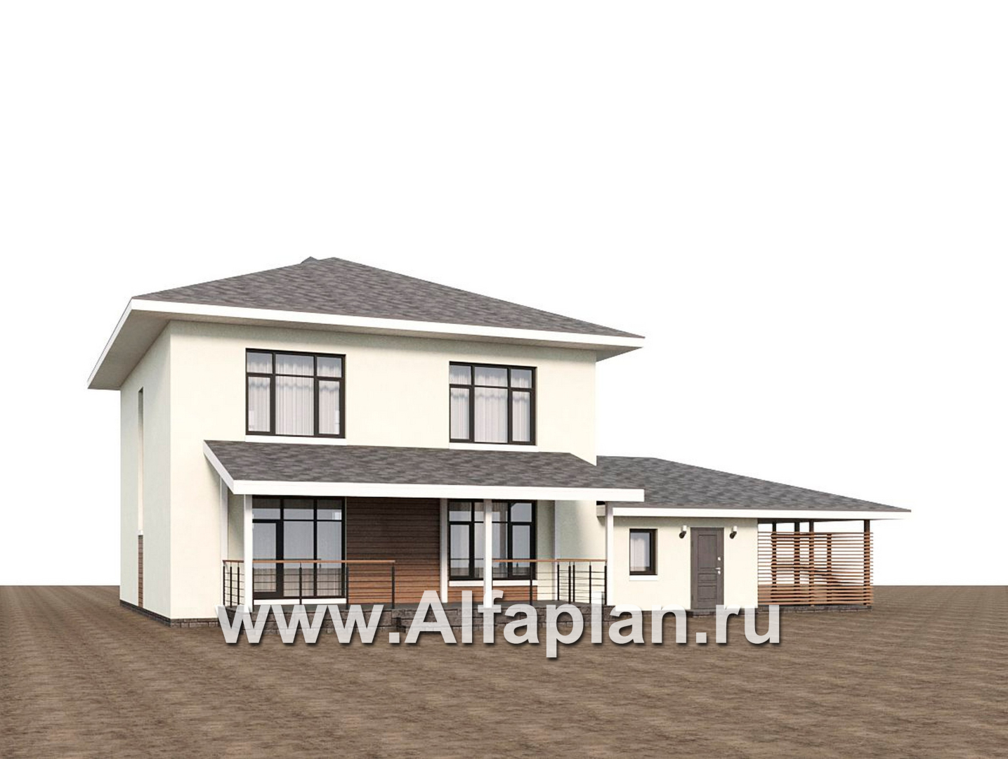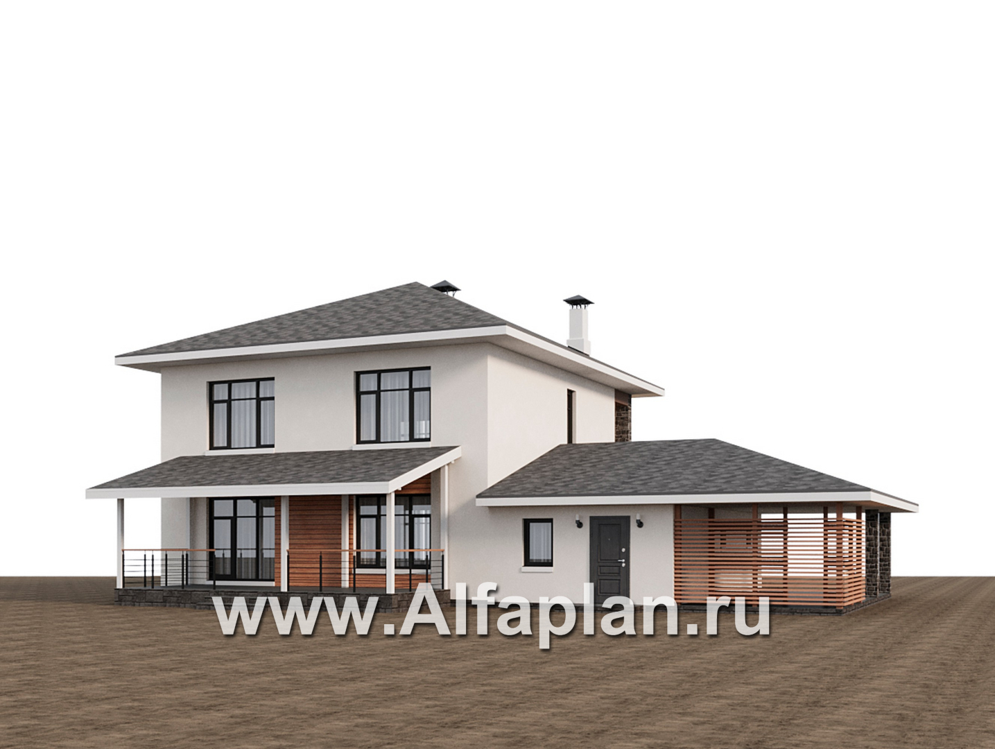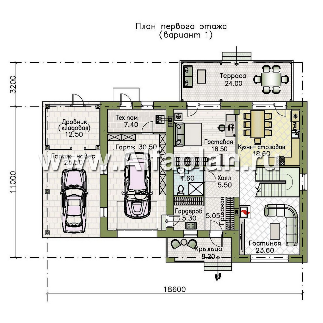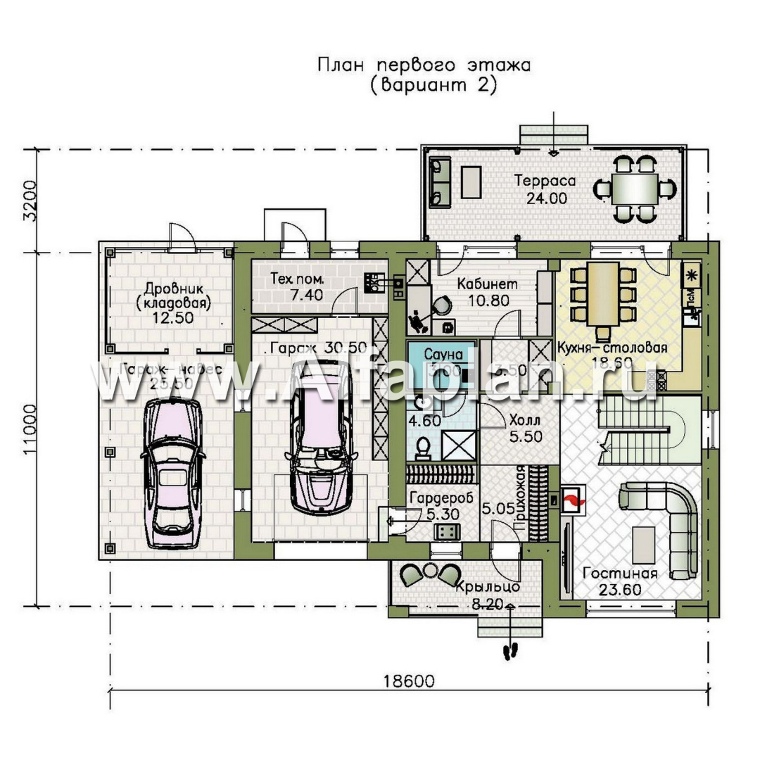 «Ладога» - проект двухэтажного дома из газобетона, в современном стиле, с террасой, планировка с гаражом