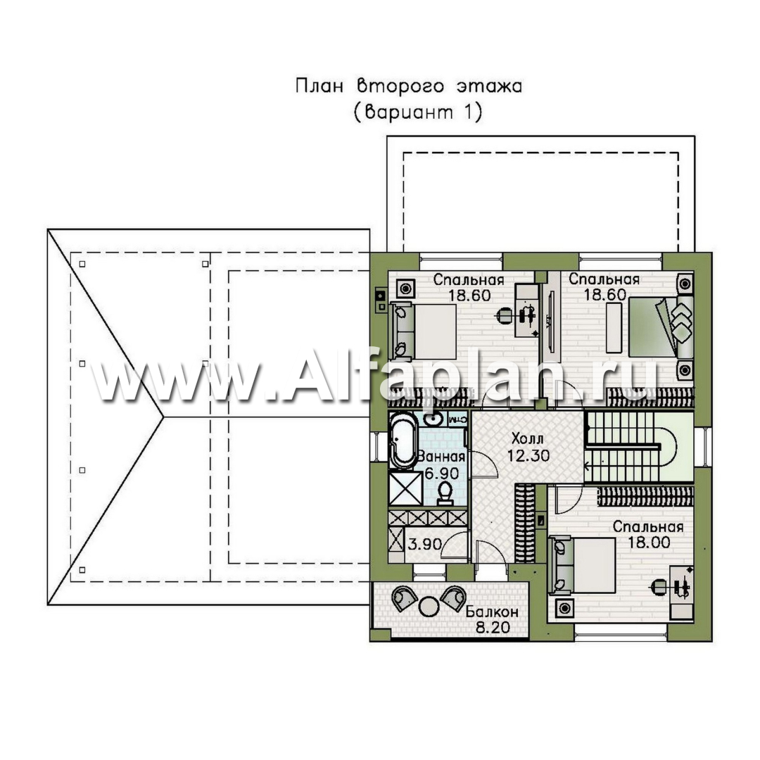 943B-2-S «Ладога» - проект двухэтажного дома из газобетона, в современном стиле, с террасой, планировка с гаражом