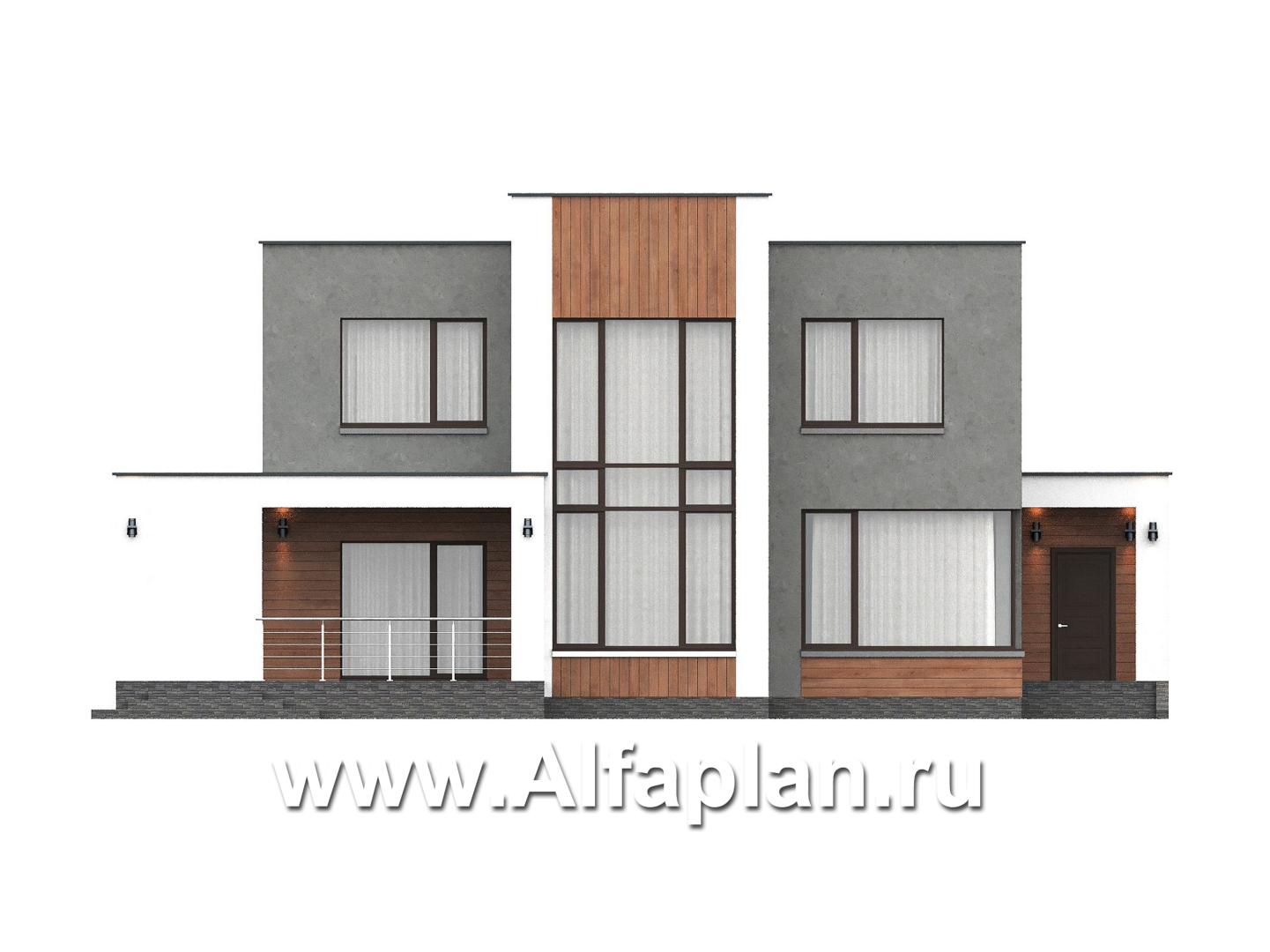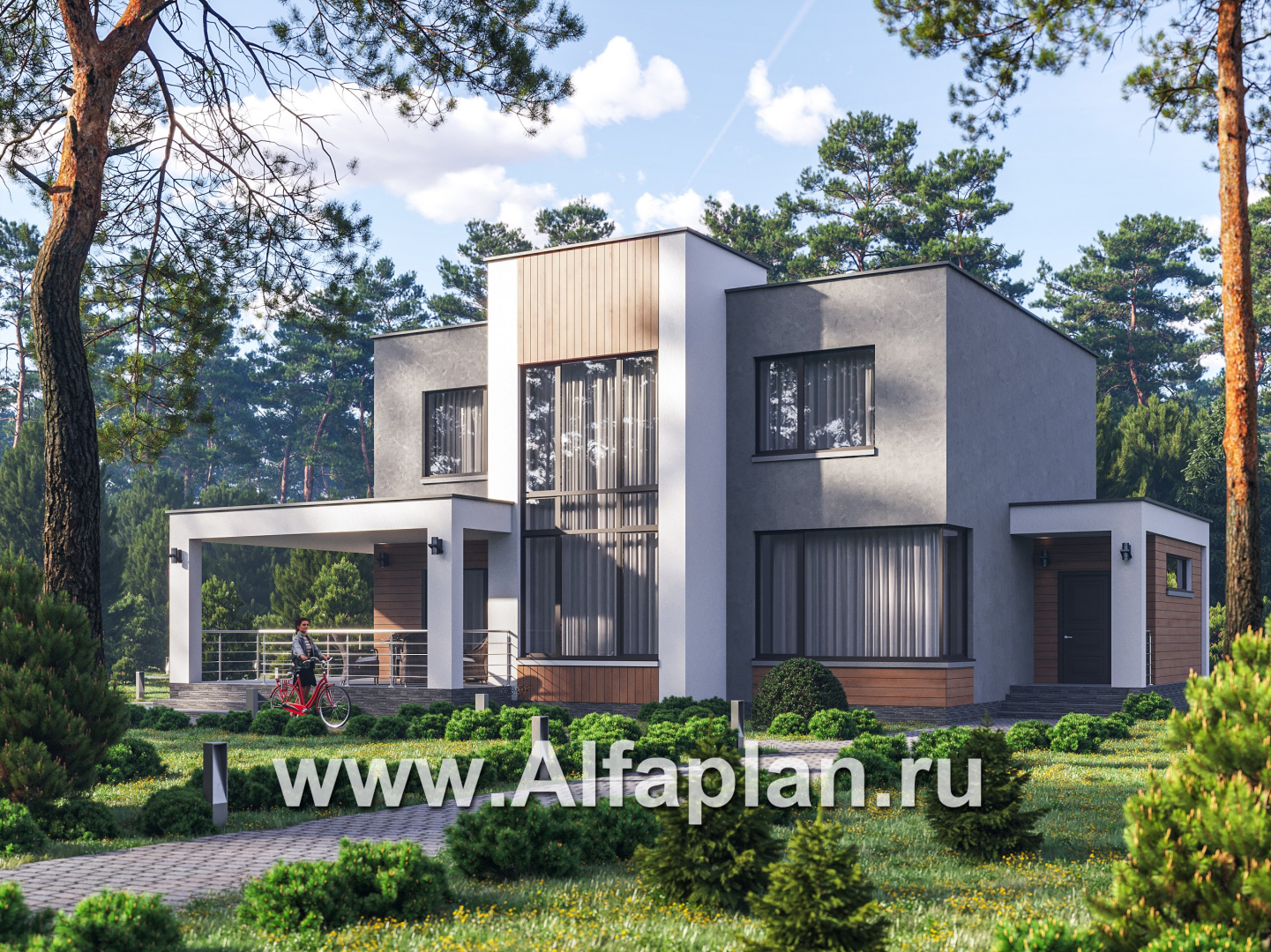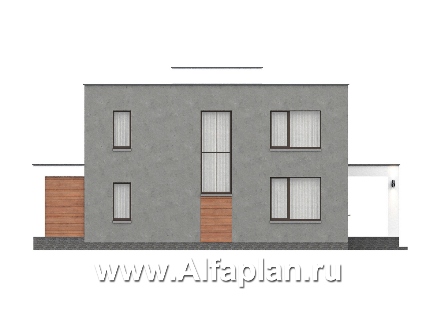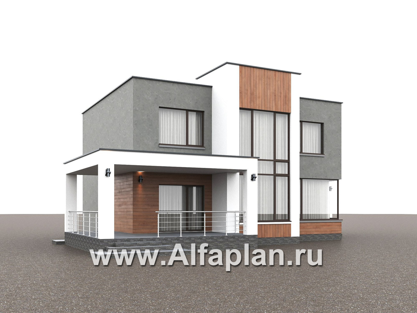 1073E «Селектум» - красивый проект двухэтажного дома, планировка с мастер спальней, двусветная столовая, плоская крыша, в стиле минимализм