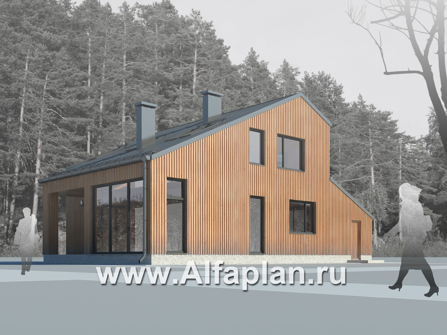 Проект дома с мансардой, планировка с кабинетом и с гаражом на 1 авто, в современном стиле
