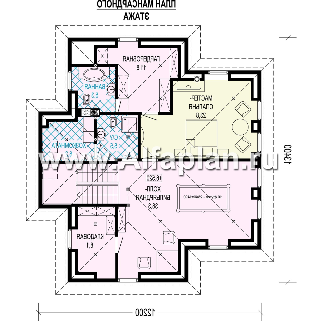 Проект двухэтажного дома, с мансардой, планировка с террасой и с биллиардной, в современном стиле - технические характеристики