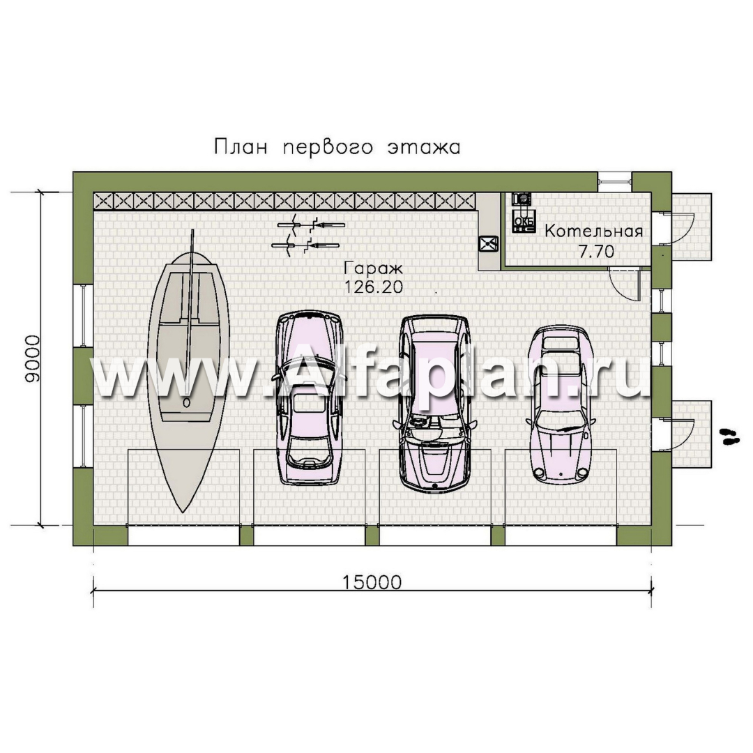 Проект гаража на 4 автомобиля, без столбов внутри - технические характеристики