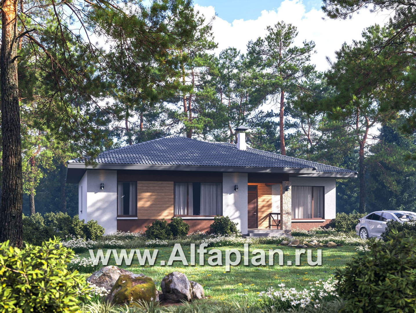 961B-S «Глория» - проект одноэтажного дома, c террасой, планировка мастер спальня, гардероб и постирочная, 3 спальни