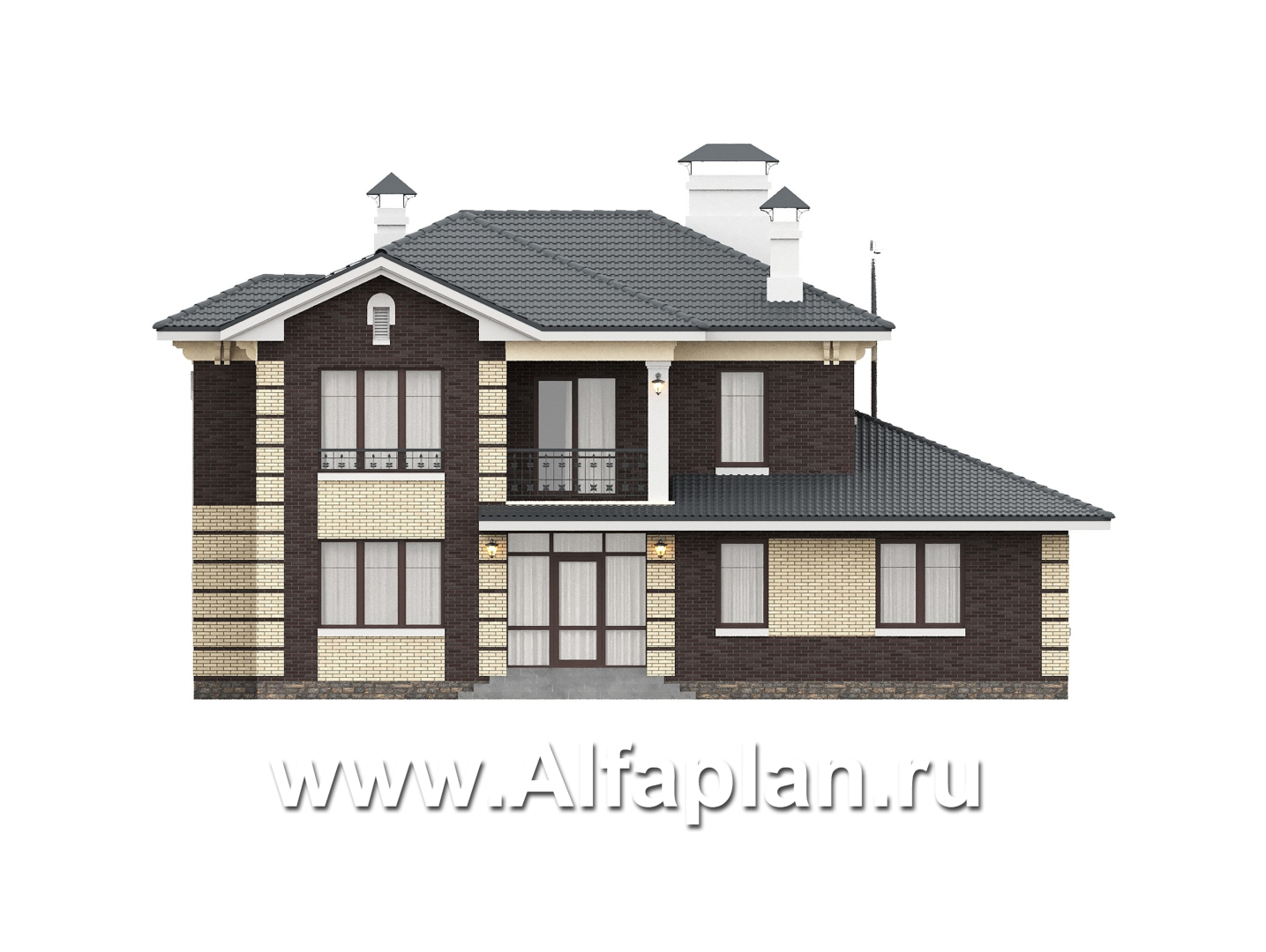 155C-S «Репутация» - красивый проект двухэтажного дома из газобетона, планировка с эркером и сауной, в английском стиле