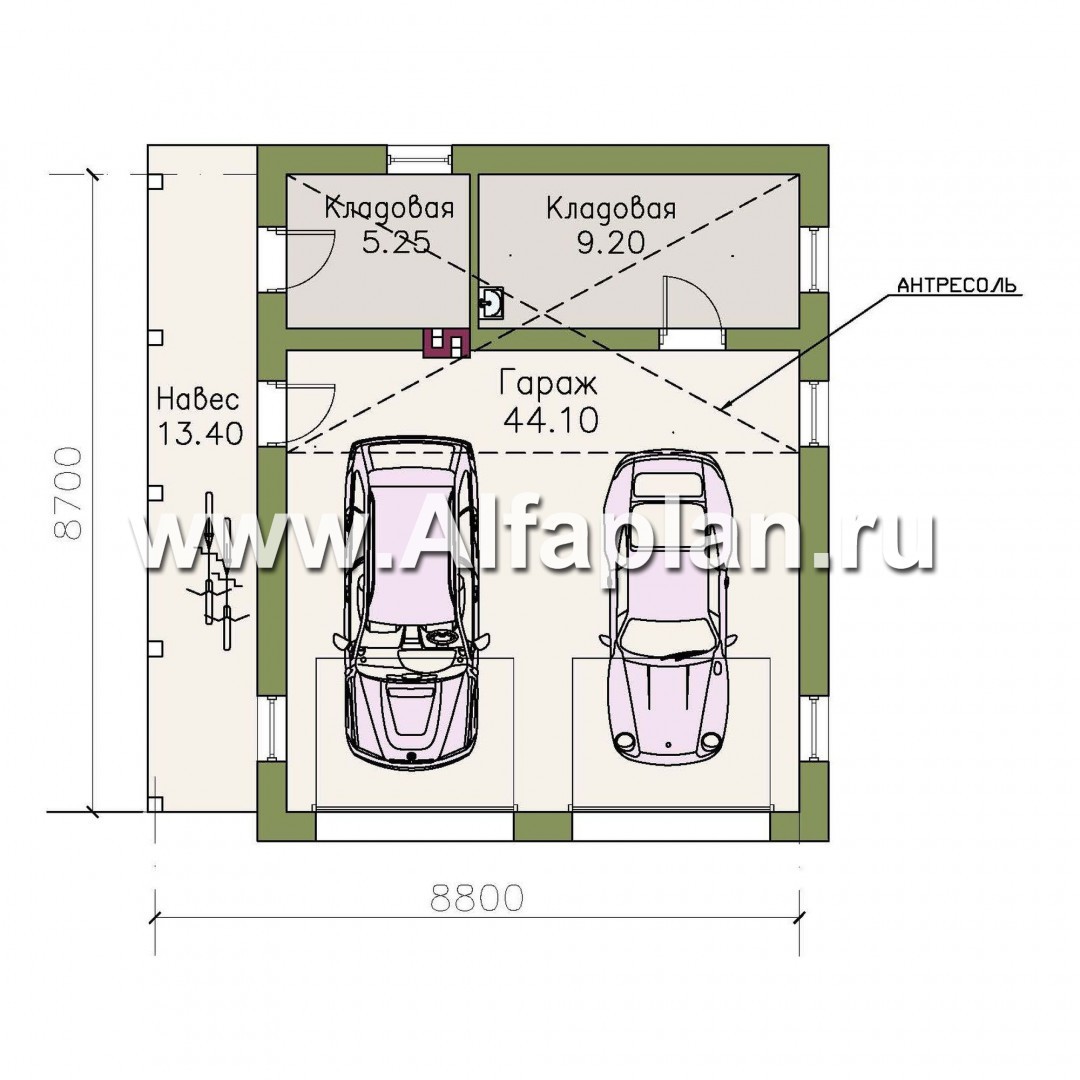 | Площадь гаража | 44 м² |