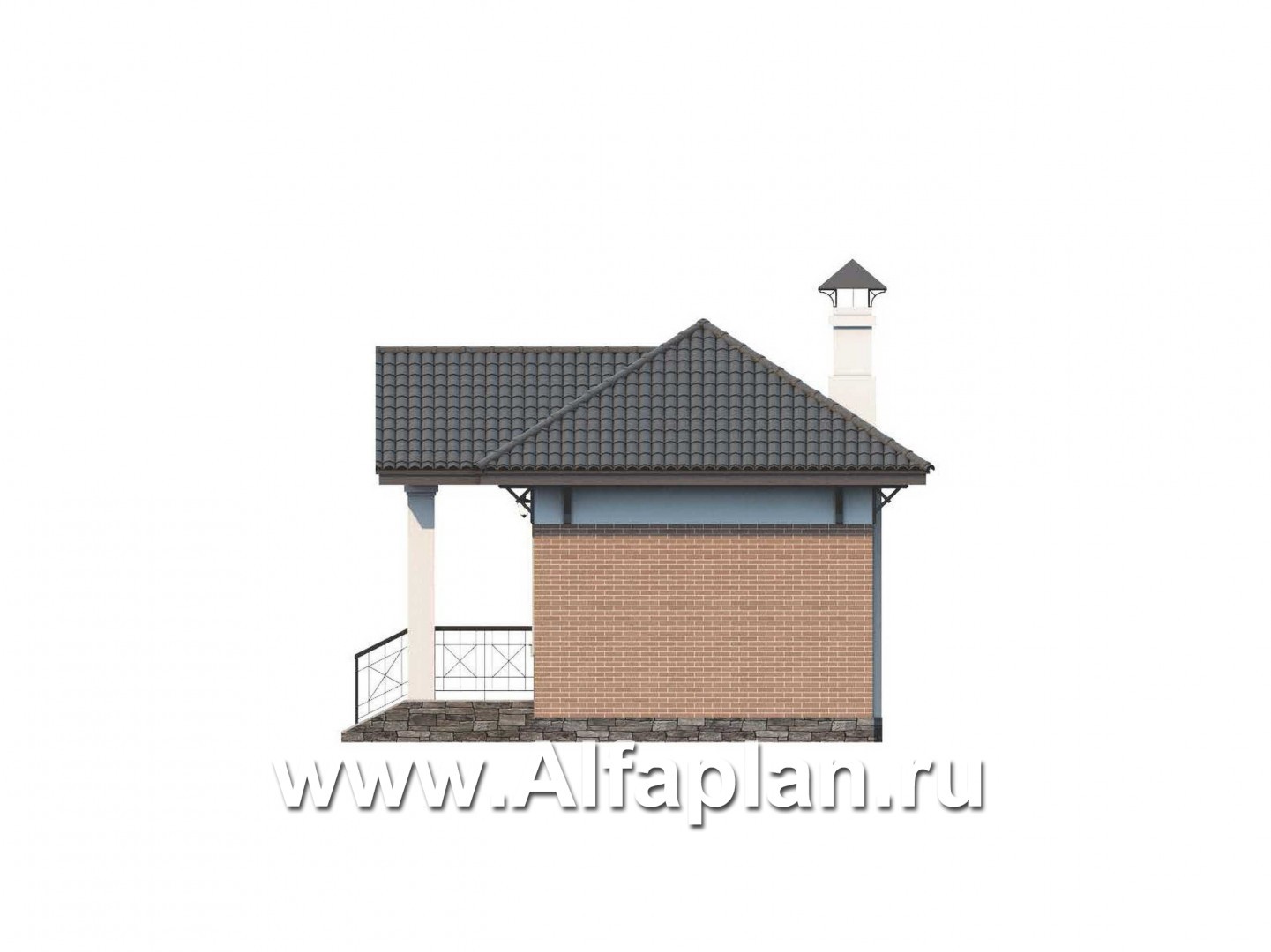 Дом из газо-, пенобетона имеет форму вытянутого прямоугольника, и это дает достаточное количество вариантов размещения, в том числе и на узком участке. Что касается стилистических особенностей оформления, проект в достаточной мере универсален. Так, постройка будет отлично сочетаться с домом, построенным в классическом стиле. Свою роль сыграли строгие, лаконичные очертания фасада, наличие в его декоре белых оштукатуренных поверхностей и, разумеется, центральный вход, выполненный в виде портика с колоннадой. Несложно предположить, что фасад центрального коттеджа будет украшен коваными фонарями и ажурными лестничными ограждениями – совсем как у описываемого гостевого дома.
