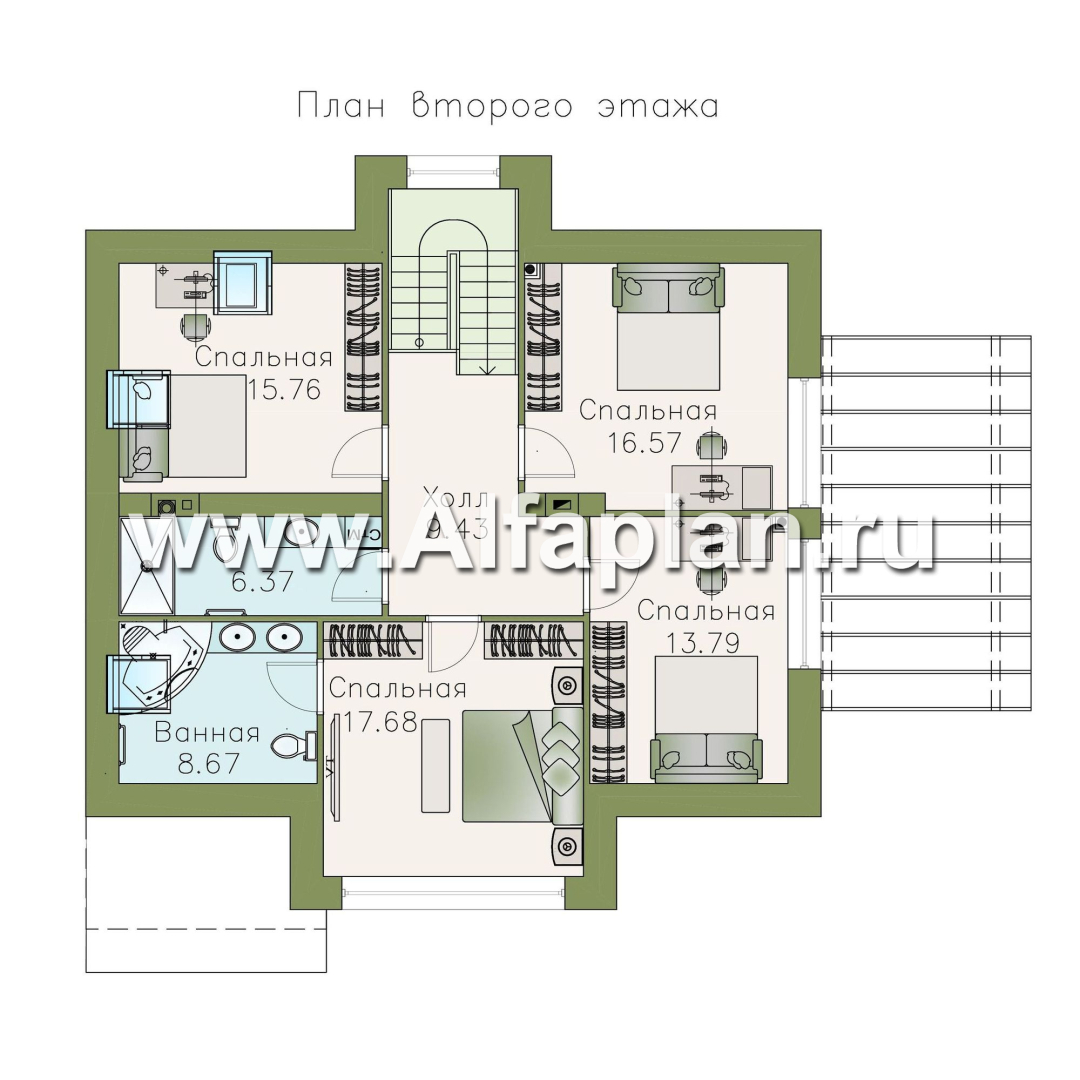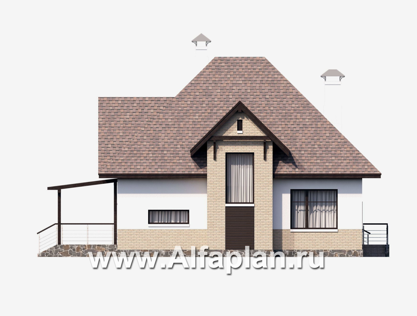 Строительство этого дома под ключ не представляет сложностей, за счет мансарды с высоким уклоном кровли достигается экономия средств. Проект разработан архитектурно-дизайнерской студией ®«Альфаплан». У нас – только уникальные авторские проекты домов