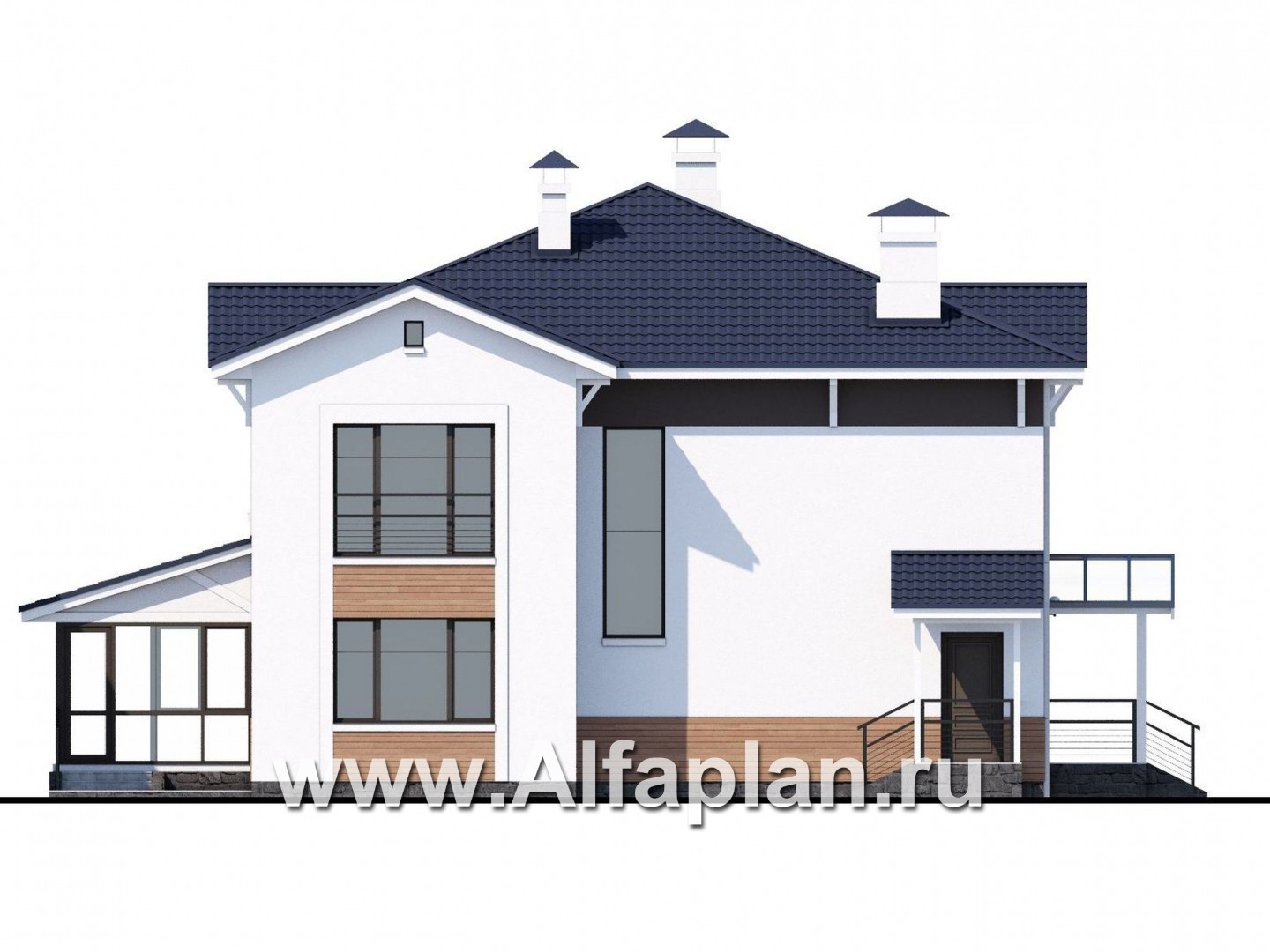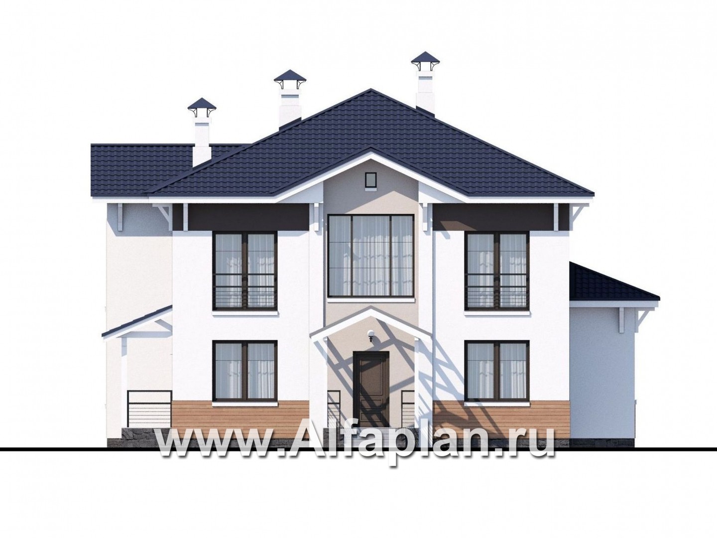 Этот проект дома из газобетона может быть реализован также с применением пенобетона или пустотного кирпича. При строительстве заказчику предлагается на выбор прямой проект или в зеркальном отражении.
