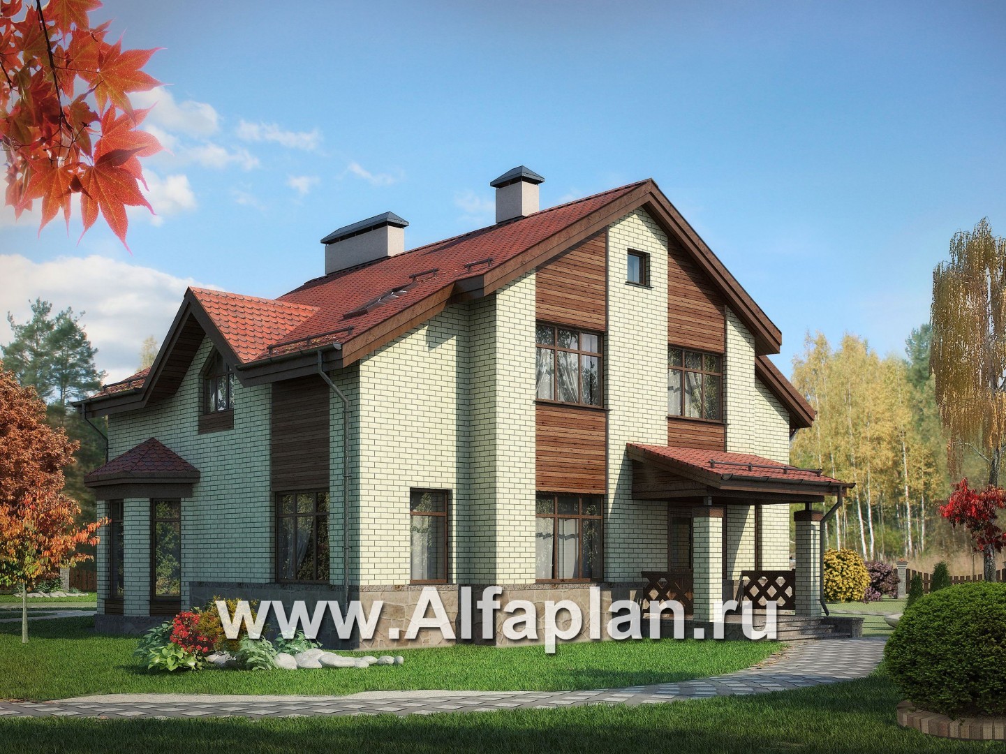 | Наружная отделка стен | лицевой кирпич, деревянная рейка | |