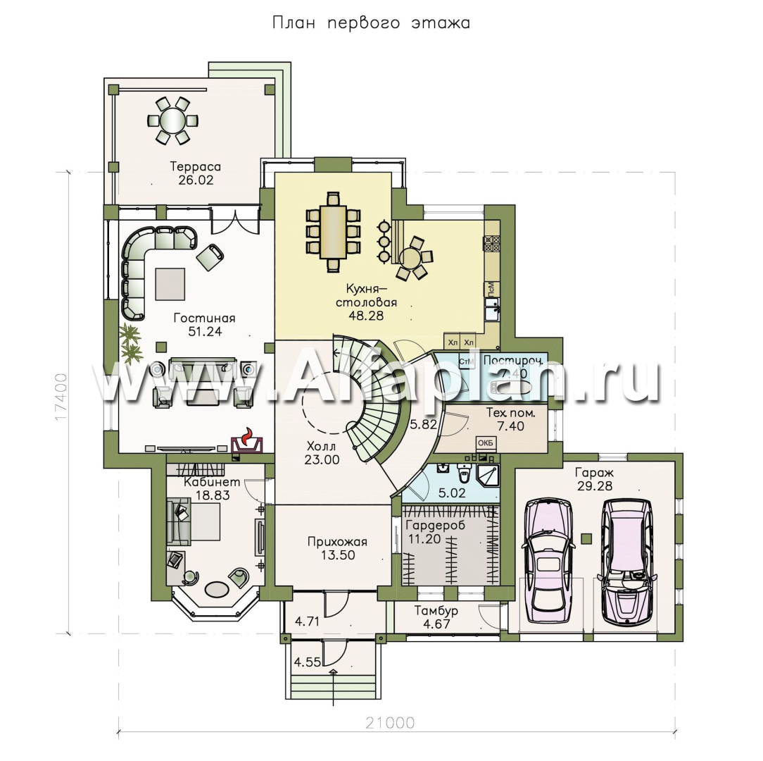 Вилла «Эдельвейс» 417В — живописный современный особняк. Изюминка проекта и, одновременно его планировочное ядро, холл с авторской винтовой лестницей, объединяющей этажи.
