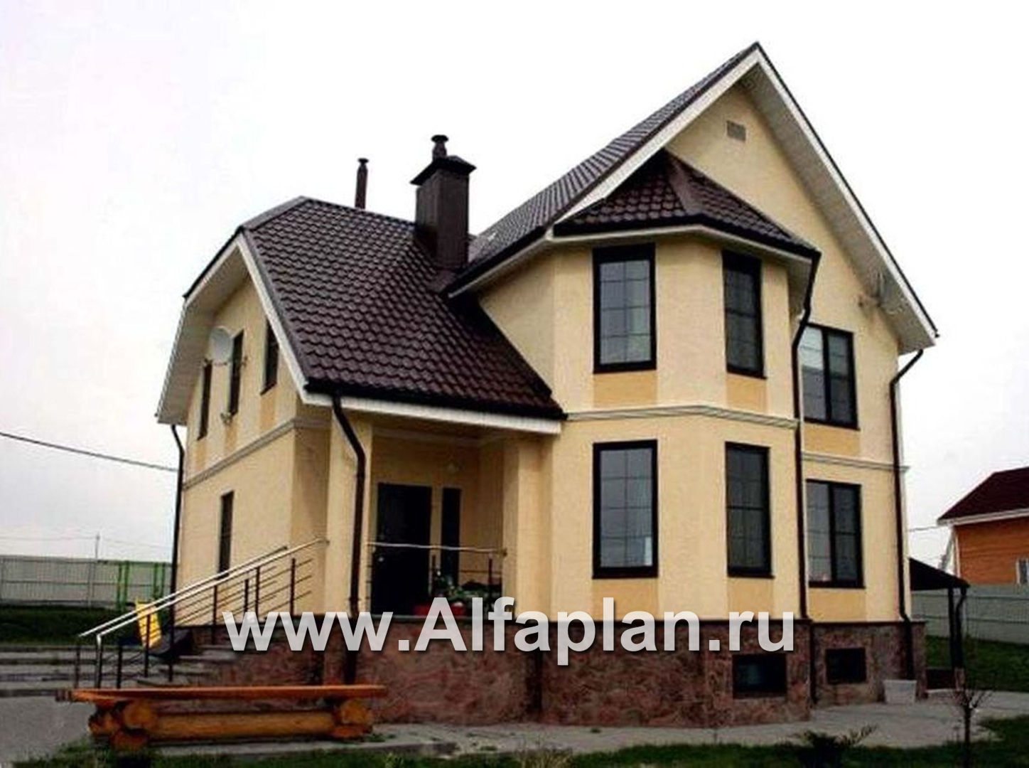 Светлый, имеющий сложный рисунок кровли и, вместе с тем, компактный в плане с вертикальной ориентацией, проект 30АС «Успех» — это вариант прекрасного коттеджа в двух надземных уровнях, получающего дополнительный этаж за счет эксплуатируемого цокольного. Такое решение позволяет все помещения вспомогательного толка сосредоточить в подземной части дома, увеличив таким приемом жилую площадь над нулевой отметкой.